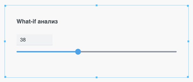 Взаимодействие: визуал отображается как числовой инпут со слайдером. При изменении значения все визуализации, использующие данную переменную, обновляются в реальном времени.