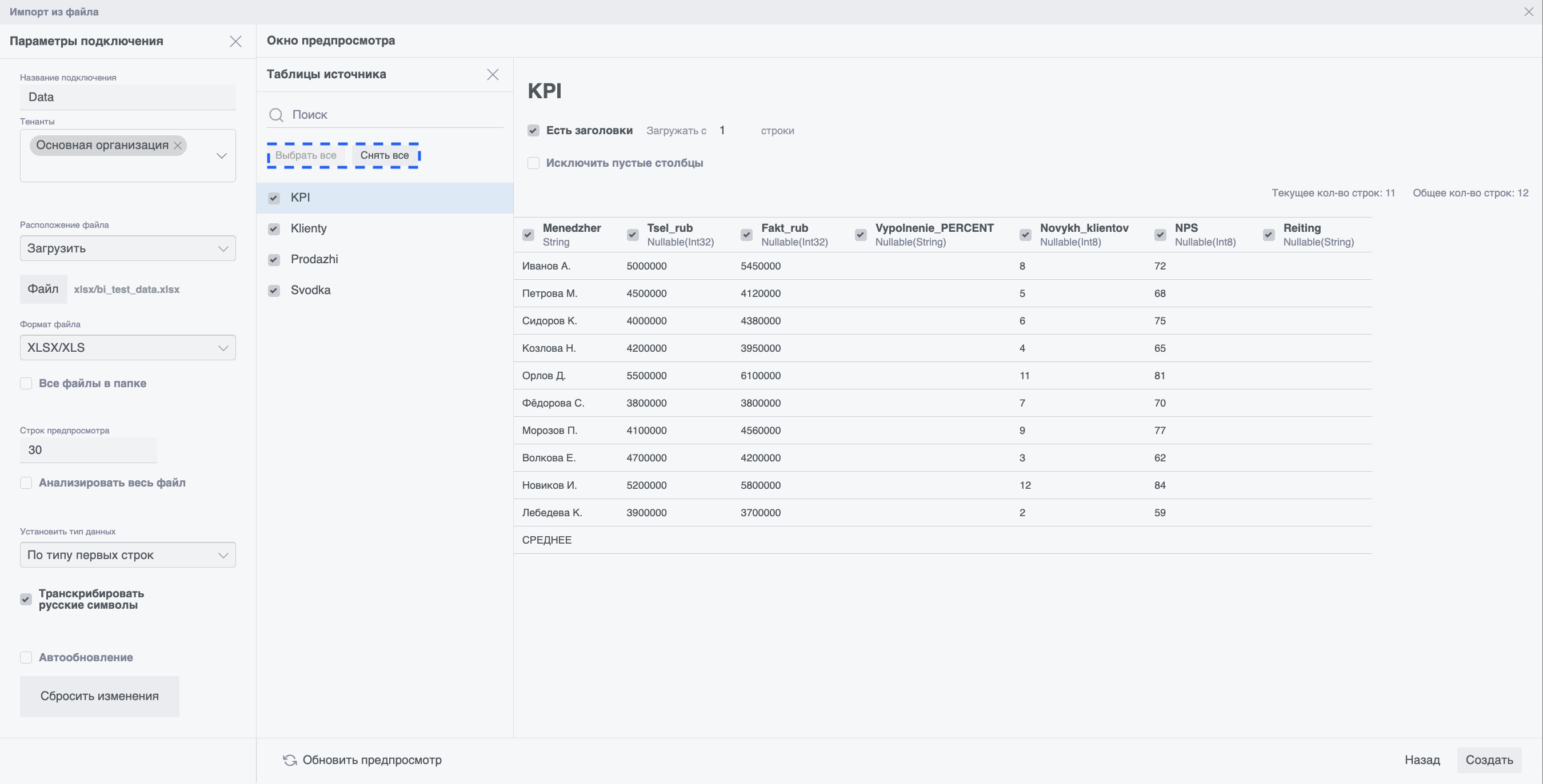 Интеграция: в редакторе SQL-кода для модели данных доступна таблица со всеми переменными What-if анализа. Переменные вставляются в SQL-выражения по аналогии с другими динамическими значениями.