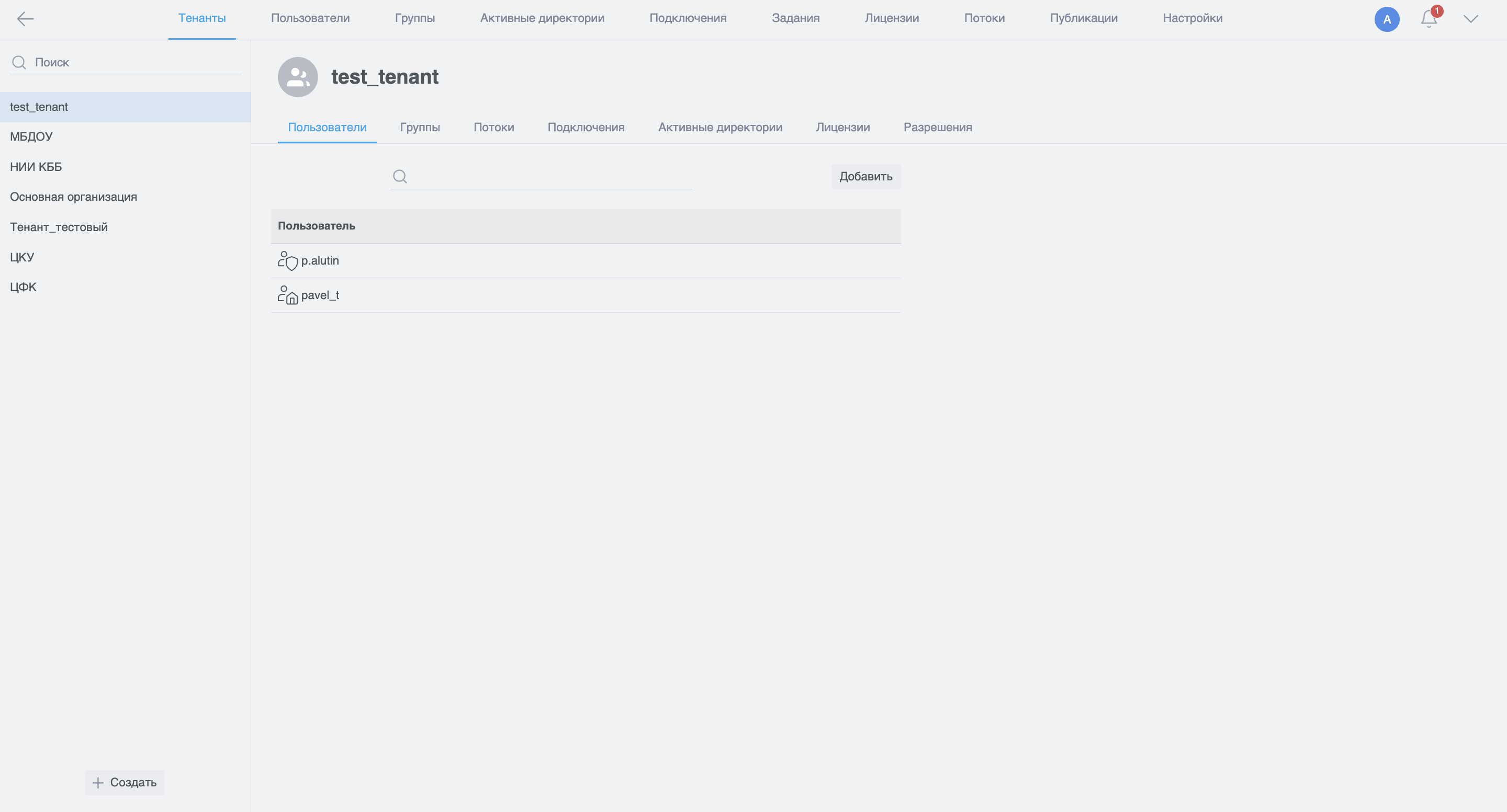 В системе реализована поддержка мультитенантной архитектуры. Теперь в рамках одного стенда можно организовать несколько полностью изолированных контуров — тенантов. Каждый тенант представляет собой независимое пространство с собственными пользователями, потоками, подключениями и лицензиями.